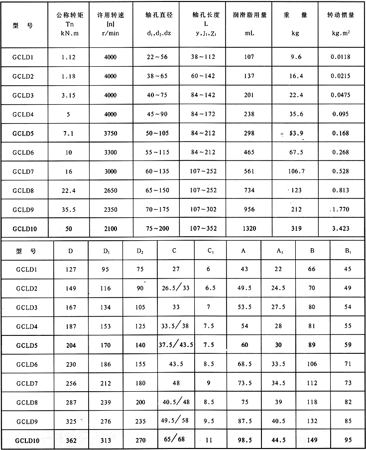 GCLD型 聯(lián)軸器參數(shù)與尺寸(mm)